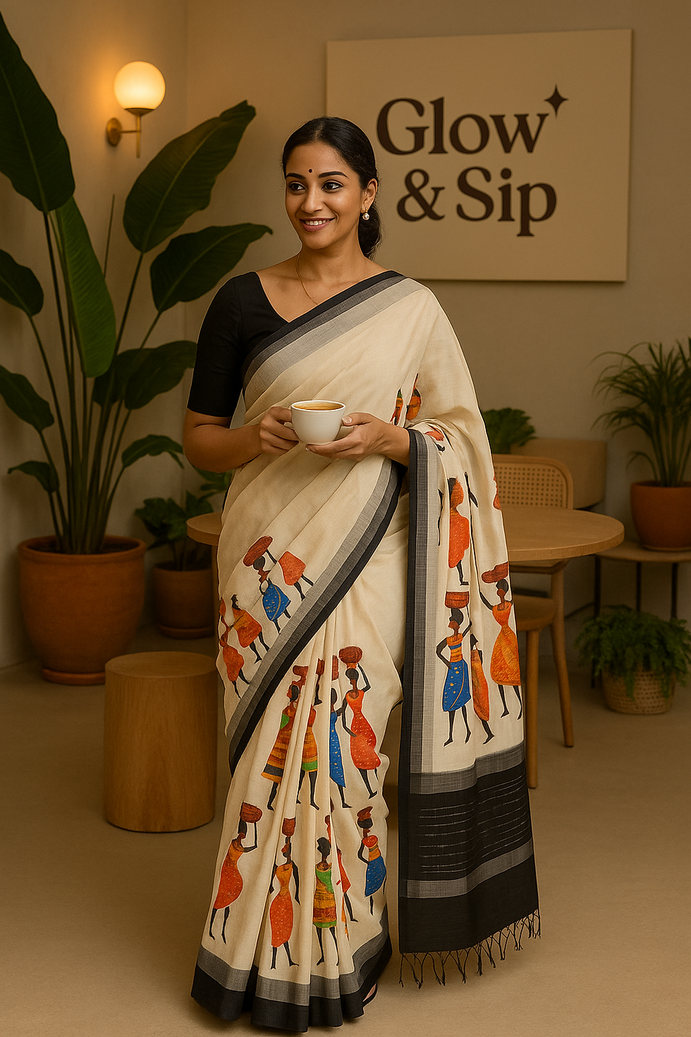 Glow & Sip blends skincare, jewelry, coffee, and handlooms into one soulful space. Each piece is rooted in beauty and crafted to help you glow from the inside out — naturally, mindfully, beautifully.